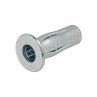 M6 x 1.00p x 17.5mm Metric Coarse G304 Stainless Nutsert Large Flange Round Open Splined Grip Range 3 - 5mm