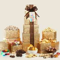 Happy Birthday Golden Gift Tower of Sweets