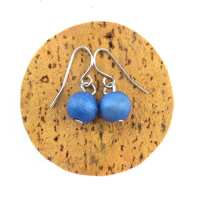 Denim Blue Lola Round Wooden Bead Earrings
