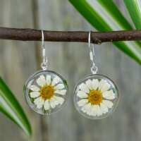 White Mexican Flowers Round Medium Hook Earrings