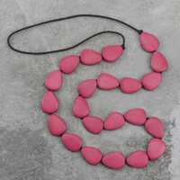 Tulip Pink Stephanie Flat Drops Long Wooden Necklace