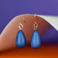 Denim Blue Wooden Teardrop Earrings