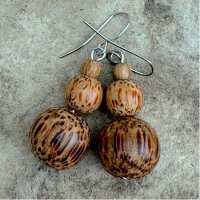 Natural Coconut Palmwood Grace Triple Baubles Wooden Earrings