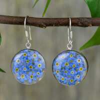 Blue Mexican Flowers Round Medium Hook Earrings