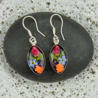 Garden Mexican Flowers Oval Small Hook Earrings