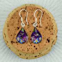 Purple Mexican Flowers Drop Small Hook Earrings