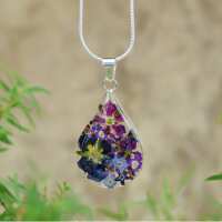 Purple Mexican Flowers Medium Drop Necklace