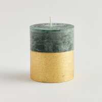 Green and Gold half-dipped Winter Thyme Scented Christmas Pillar Candle