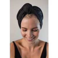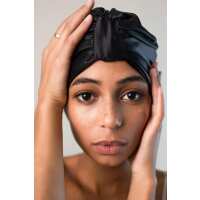 Schlafhaube Seidenturban | Schwarz, doppellagig 22 Momme | verbesserte Passform, hinten bindbar ohne Gummizug