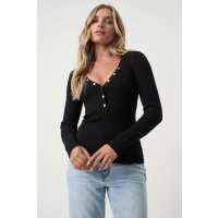 Stella Henley Knit Top Black / M