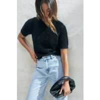Pia Metallic Fluffy Knit Tee Black/Black Metallic / XXL