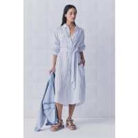 D-Luxe Patch Linen Midi Dress White/Navy Stripe / S