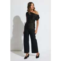 Mae Tipped Shoulder Sequin Top Black / XXL