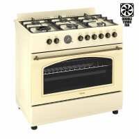 Ferre F9S60E7-CR-RETRO 90cm Dual Fuel Range Cooker With Double Turbo Fan & 6 Burner(1 Wok) - Cream