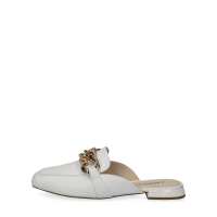 Caprice Footwear Vanny White Chain Detail Leather Backless Loafer