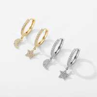 Star and Moon Mini Hoop Earrings - Silver