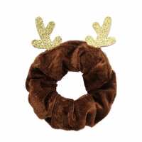 Christmas Reindeer Velvet Scrunchie - Brown