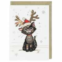Bug Art Kooks Kitten In Antlers Christmas Card