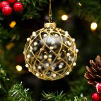 Gisela Graham Gold Glitter Trellis & Pearl Glass Bauble