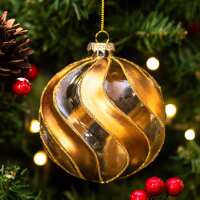 Gisela Graham Clear & Gold Swirls Glass Bauble