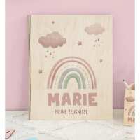 Zeugnismappe Holz Ringbuch "Regenbogen Rosa"