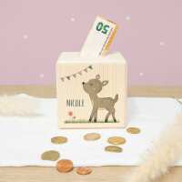 Spardose Würfel "Reh" bunt bedruckt