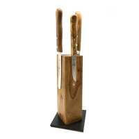 Messerblock aus Olivenholz mit Magnethalterung auf Resopal Sockel