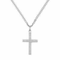 KREUZ HALSKETTE ICED OUT 925 SILBER RHODINIERT Anhänger mit 60cm Kette