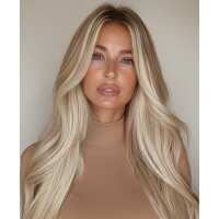 invisible clip-in hair extensions rooted blonde hightlights. 14" / Extra Volume
