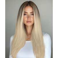 invisible clip-in hair extensions rooted blonde. 20" / Classic