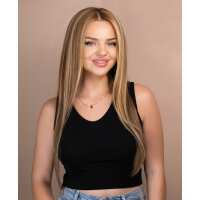 4x4 lace front wig - 10" - blonde with face-framing highlights.