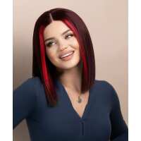 long bob human wig - 10" red money piece highlights.