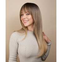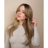 vegan fiber wig - 24" rooted medium blonde with layers.