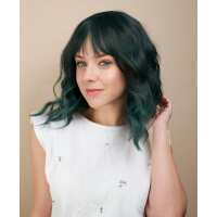 vegan fiber wig - 16" dimensional teal with fringe.