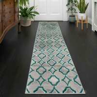 Modern Emerald Green Trellis Living Room Rugs 60cm x 240cm Runner