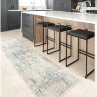 Modern Blue Distressed Abstract Kitchen Runner Rug