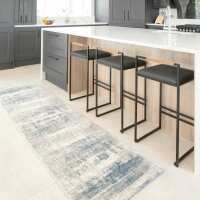 Soft Blue Distressed Abstract Kitchen Runner Rug 80cm x 300cm Runner