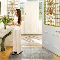 Soft Washable Blue Heritage Rug - Hazel 80cm x 150cm