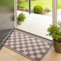 Washable Grey Checkerboard Doormat - Chess 80cm x 150cm