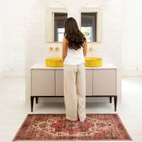Soft Washable Red Antique Bathroom Mat - Eliza