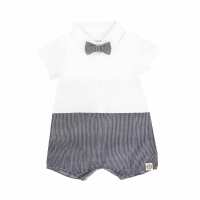 Baby Boy Bow Tie Romper in Black Stripes-3M