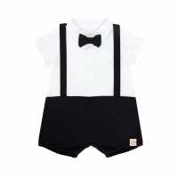 Baby Boy Bow Tie Suspender Romper in Black-12M