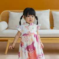 Heritage Series - Girls Cheongsam in MBS Sunset Skyline Print-5-6Y