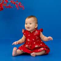 Lion Dance Series - Baby Girl Cheongsam in Red Lion Print-12-18M