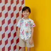 Lion Dance Series - Boys Shirt in White Lion Print (Personalisable)-8-9Y