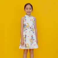 Lion Dance Series - Girls Halter Dress in White Lion Print (Personalisable)-5-6Y