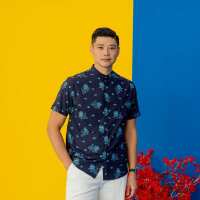 Lion Dance Series - Men's Shirt in Navy Lion Print (Classic Fit) (Personalisable)-XXL