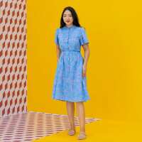 Mandarin Orange Series - Ladies Button Down Dress in Blue-M