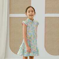 Zodiac Series - Girls Cheongsam in White Floral Snake Print-10-11Y