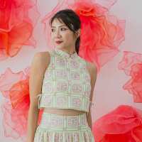 Heritage Series - Ladies Cheongsam Top in Beige Peranakan Print-L
